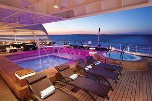 The Retreat is located around a central whirlpool with step-up access to water maintained at an inviting temperature. Up to 28 guests can stretch out on comfortable sun loungers; pull up a bar stool or take a table seat for champagne and cocktails custom created by Seabourn mixologists; or enjoy a selection of bites from a healthy spa menu. A selection of amenities include fresh fruit baskets, premium sun lotions, Evian mist spray, plush towels and personalized bathrobes, while a dedicated Retreat Concierge will be available to satisfy guest requests.