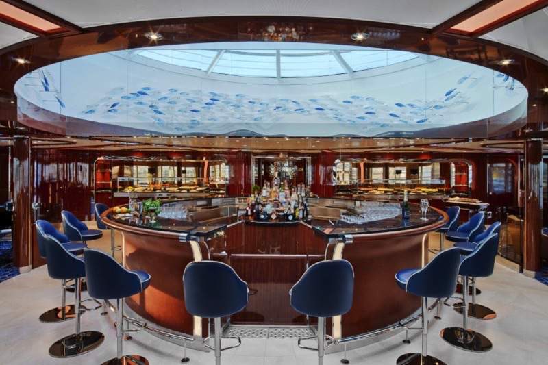 A selection of coffees are prepared by the skilled onboard baristas some using beans roasted in Seabourn Square. For those feeling a bit hungry, Seabourn Square offers freshly made pastries and other on-the-go breakfast items in the morning, as well as an assortment of light sandwiches and desserts later in the day, along with a selection of artisanal gelati made on board. Guests will also find a wide range of books in the adjoining library, with a host of titles on subjects such as adventure, expeditions and other topics of interest to enjoy while onboard. Staying current with the news is made easy with a selection of printed newspapers from around the world and tablets featuring the Press Reader news application available to browse each day.