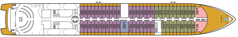 Launch year | Language | Gross tonnage | Length | Width | Currency | Speed | Capacity | Crew count | Deck count | Cabin count | Large cabin count | Wheelchair cabin count | Electrical plugs |