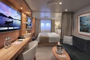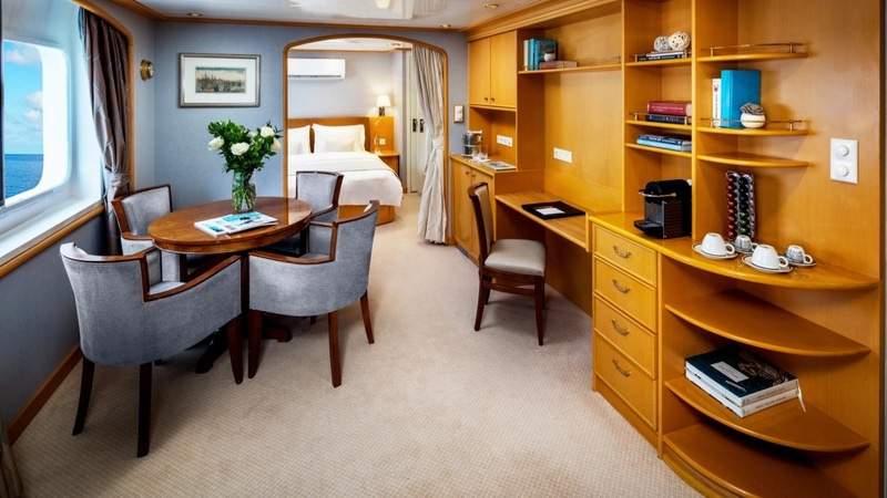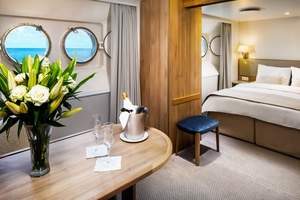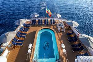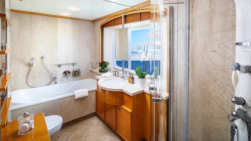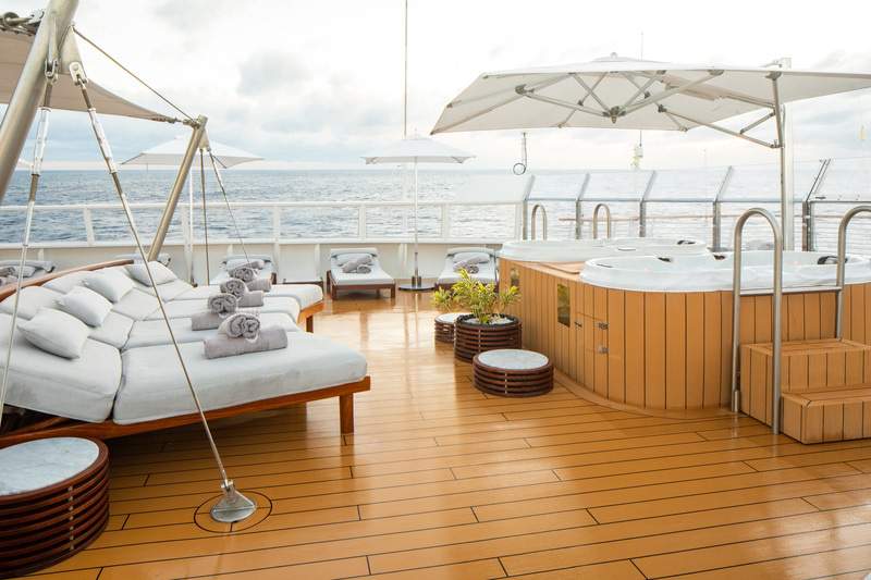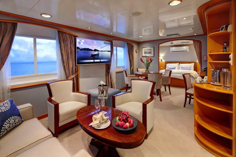 All of our suites & staterooms have an ocean view. Based on how the staterooms are configured, our yachts can accommodate up to 112 guests—based on double occupancy.