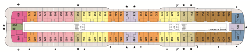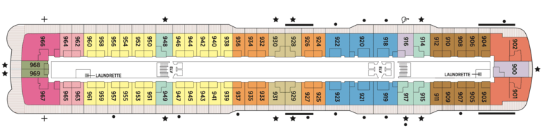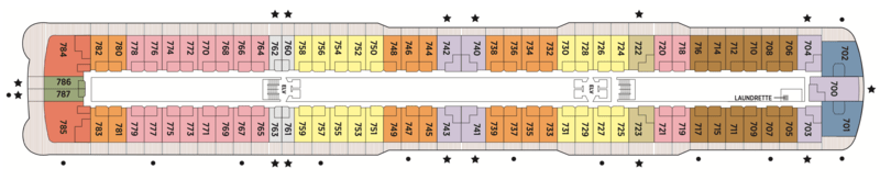 | Launch year | Refit year | Language | Gross tonnage | Length | Width | Currency | Speed | Capacity | Crew count | Deck count | Cabin count | Large cabin count | Wheelchair cabin count | Electrical plugs |