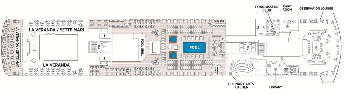 You could take a cooking class, get a seaweed wrap, lounge by the pool, eat a gourmet meal and play some blackjack all in one day aboard Seven Seas Explorer®. Explore the deck plans to plan your perfect day.
