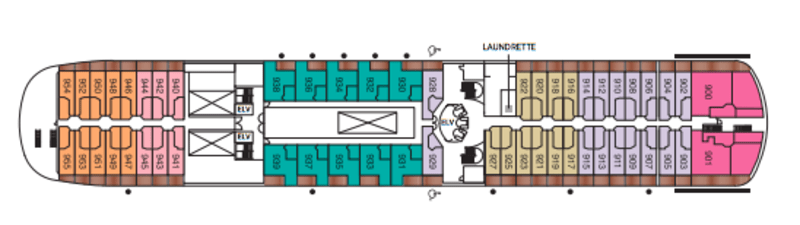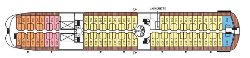 | Launch year | Refit year | Language | Gross tonnage | Length | Width | Currency | Speed | Capacity | Crew count | Deck count | Cabin count | Large cabin count | Wheelchair cabin count | Electrical plugs |