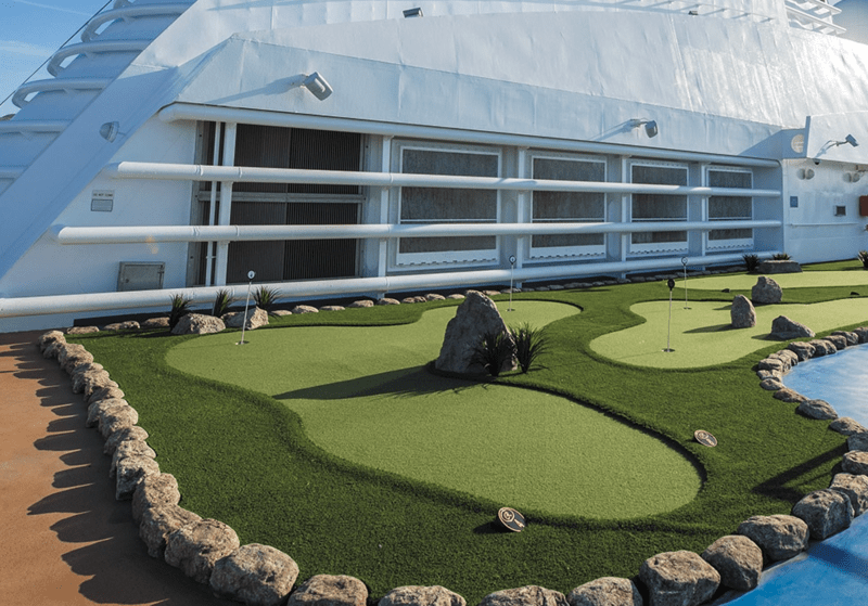 In addition to planned activities in the Fitness Center, take advantage of other sports-related activities throughout the ship. Deck 11 provides golf cages, shuffleboard, paddle tennis and a full-circle jogging track. Eleven laps around the Seven Seas Navigator® track is equal to one mile.
