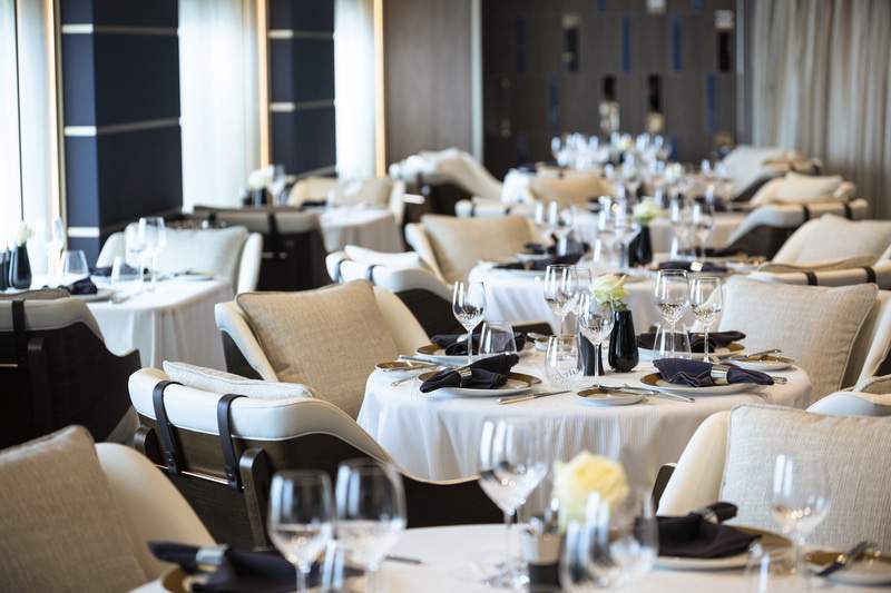 Whether you arrive for breakfast, lunch or dinner, you can look forward to European-inspired Continental cuisine served in a beautifully refined atmosphere decorated in blues and silvers with stunning Versace tableware.