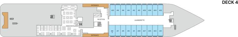 Launch year | Language | Gross tonnage | Length | Width | Currency | Speed | Capacity | Crew count | Deck count | Cabin count | Large cabin count | Wheelchair cabin count | Electrical plugs |