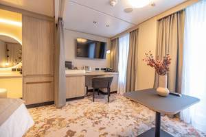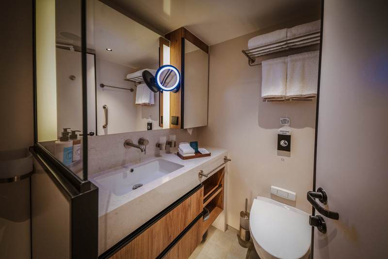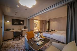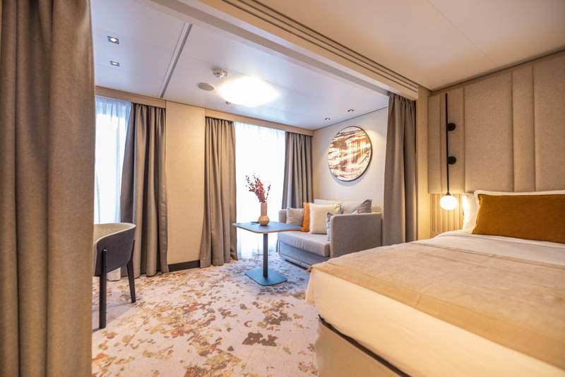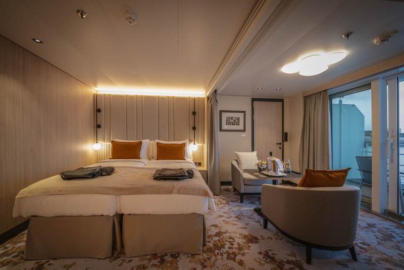 Each cabin welcomes you with a bottle of Champagne (75cl – Premium Suites, Suites, Junior Suites/37.5cl – Balcony, Oceanview) and there’s also free Wi-Fi, personal safe, and a pair of Nikon Prostaff 3S 10x42 binoculars to help you watch out for wildlife!