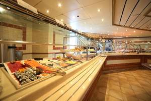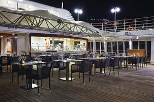 Sparkling with silver, crystal and candlelight, this luxury cruise ship’s main dining room serves contemporary, international cuisine with the sophisticated elegance and impeccable service you might expect as part of your prestige travel. Menus feature regional specialities unique to the voyage destination, for example, Roasted Chilean Sea Bass while cruising the Chilean fjords and Indian Chicken Korma en route to Mumbai. The Restaurant on board this luxury cruise ship offers open-seating dining, which means there are no assigned times, no assigned tables. You are free to dine when, where and with whom you please.