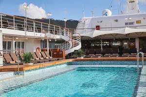 Chaise lounges arranged in the sun or shade. Bubbling whirlpools. The pool water refreshing in warmer climates, heated for cooler weather. The attentive staff at the ready with an oversized towel as you emerge from the pool, with your favourite beverage at just the right moment. The luxury cruise ship of your dreams.