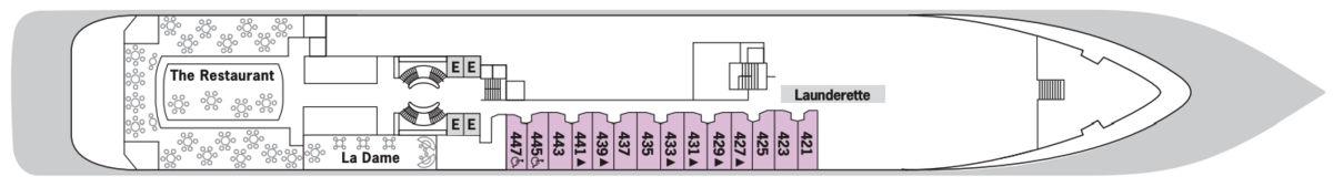 Set on the highest level at the very top of the ship, this is a quiet space for reading and reflection while being dazzled by the undulating seascapes that are constituent to life on board.