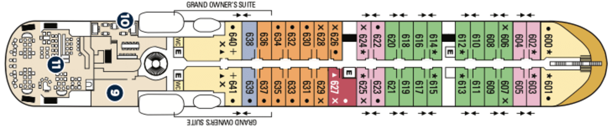 A stunning brand new owner's suites with 820 square feet of space featuring two bedrooms and two bathrooms, a verandah, and plenty of space in the sitting area for entertaining. This is the most sought after suite on the entire ship and once you stay here, you'll never stay anywhere else.