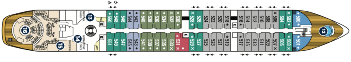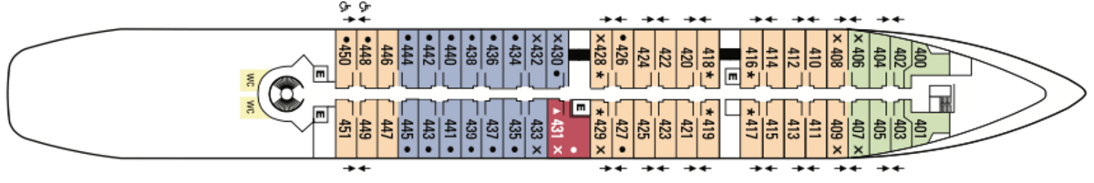 Launch year | Refit year | Language | Gross tonnage | Length | Width | Currency | Speed | Capacity | Crew count | Deck count | Cabin count | Wheelchair cabin count | Electrical plugs |