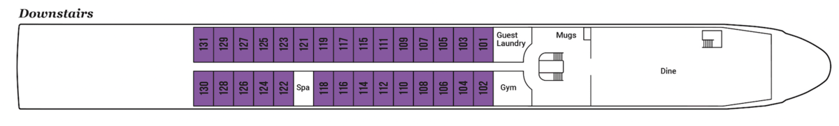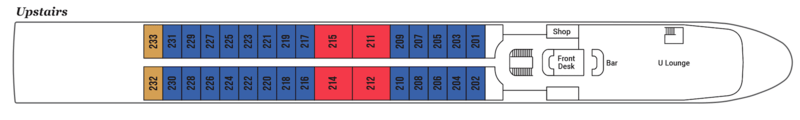 | Launch year | Refit year | Language | Gross tonnage | Length | Width | Currency | Speed | Capacity | Crew count | Deck count | Cabin count | Large cabin count | Wheelchair cabin count | Electrical plugs |