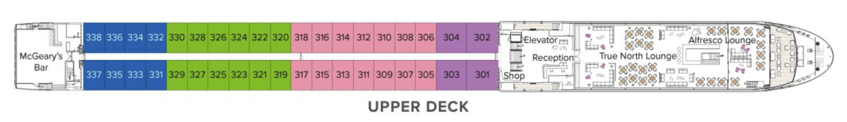 Multiple social areas provide a suitable retreat between touring. Soak up some sun on the Sun Deck, enjoy the putting green, a dip in the whirlpool, or grab a drink at the Sky Deck Bar. The True North Lounge provides another perfect retreat. Admire the scenery thanks to floor-to-ceiling glass windows, or enjoy the fresh air while relaxing in the Alfresco Lounge.