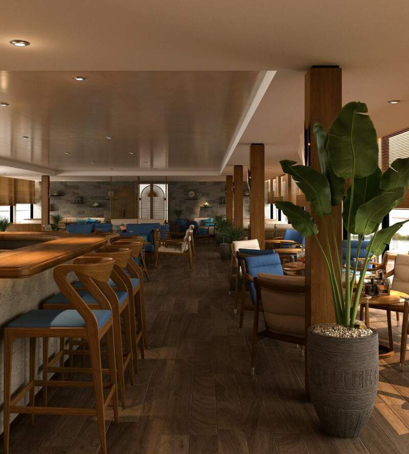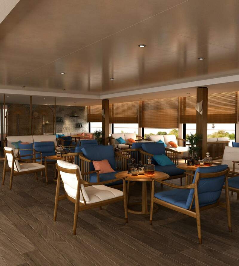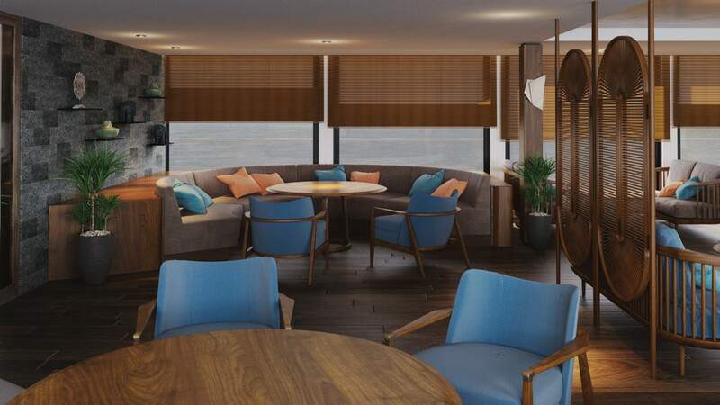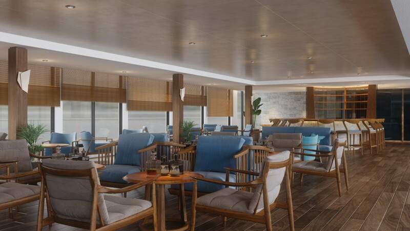 Ship facilities include a sundeck, bar and restaurant, cocktail pool and pool bar, spa with massage service, lounge area with bar and games room.