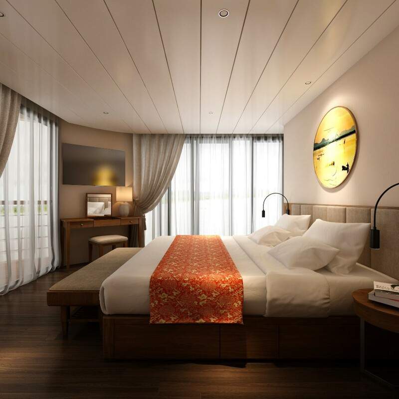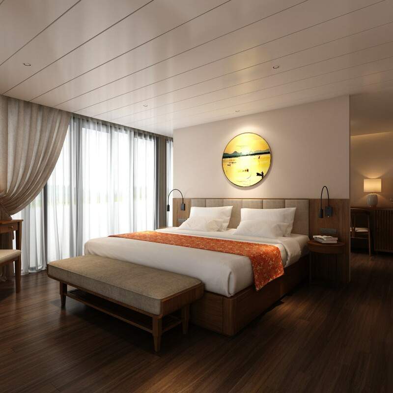 The Victoria Mekong is the greenest ship on the river blending state-of-the-art eco-credentials with four-star comfort and superior service. With just 35 passenger cabins you are guaranteed a genuine ‘small ship’ experience. Spacious, stylish staterooms all come with floor to ceiling windows, private balcony and individually controlled air conditioning and on board you’ll find an infinity pool, spa, gym, movie room, games room, boutique and even mini golf.