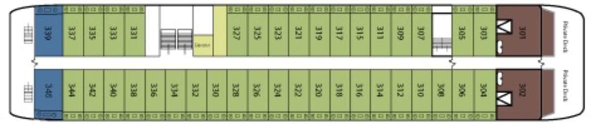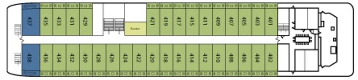 | Launch year | Refit year | Language | Gross tonnage | Length | Width | Currency | Capacity | Crew count | Deck count | Cabin count | Large cabin count | Wheelchair cabin count | Electrical plugs |