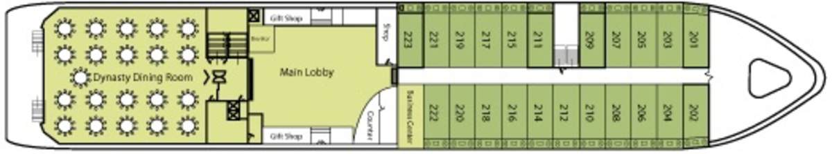 Awarded 5-Stars by the China National Tourism Administration in 2003, the Victoria Selina is the recognised leader on the Yangtze River along with its sister ships, the Prince and Lianna. With sky blue lighting glowing from the periphery of high ceilings, and elegant decor throughout the ship’s interior, passengers will sail in comfort as they experience the scenery, natural history and culture of the Yangtze.