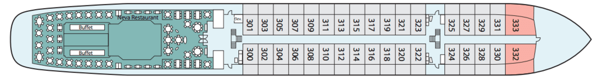 | Launch year | Refit year | Language | Gross tonnage | Length | Width | Currency | Speed | Capacity | Crew count | Deck count | Cabin count | Large cabin count | Wheelchair cabin count | Electrical plugs |