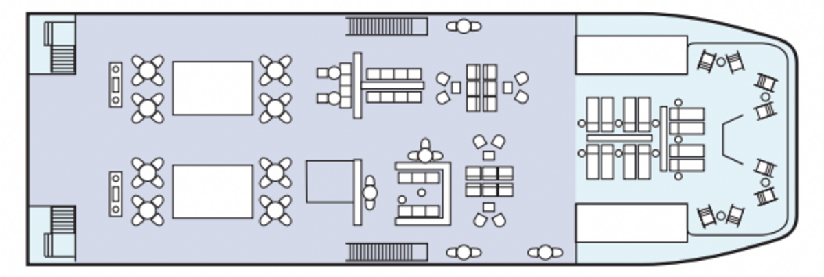41 comfortable outside staterooms (12 Standard Staterooms, 21 Veranda Staterooms, 6 Veranda Suites, 2 Explorer Suites)