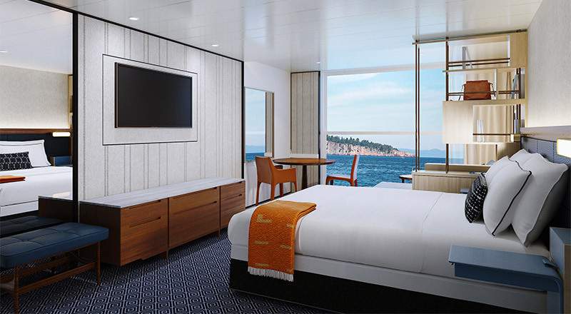 Nordic Junior Suites include our Nordic Balcony and more storage and seating than our Nordic Balcony staterooms, plus an expanded bathroom with extended shower and double sinks. Explorer Suites are 80% larger than junior suites, with two separate rooms, a Nordic Balcony and private veranda, spacious bathroom and private access to our Explorer Suites Garden. All suites include welcome champagne, a fully stocked mini-bar, complimentary laundry, priority restaurant reservations and all the amenities of our regular Nordic Balcony staterooms.