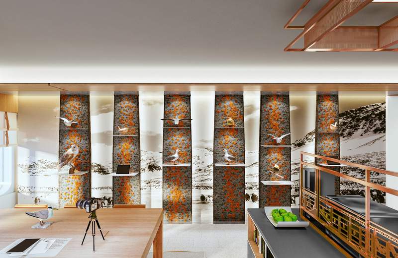 Our Nordic Balcony is the optimal wildlife observatory at sea. Floor-to-ceiling, distortion-free glass at the very edge of your ship lets you take in the views while keeping the elements out. Should you wish to feel even closer to nature, the top of your panoramic glass lowers to transform your stateroom into a sheltered al fresco lookout, with an observation shelf at elbow level to stabilize binocular viewing or photography. Each stateroom features our king-size Viking Explorer Bed with luxury linens, our floor-to-ceiling drying closet for your Viking Expedition Kit, and elegant bathroom with a spacious shower, heated floor and premium amenities.