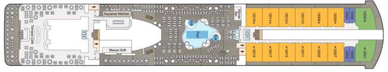 Vista’s Pool Deck mirrors the beauty of the surrounding sea. Taking its cue from natural environments that inspire tranquility, the design of the Pool Deck brings together organic textures and calming tones to create an idyllic onboard escape. Relax in the luxury of a shaded cabana overlooking the serene scene, or lounge on a daybed right at the water’s edge until you’re ready for a refreshing swim.