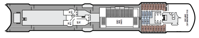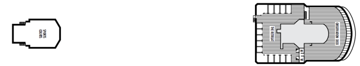 The Lido Pool is also located midship on deck 9. It has 3 hot tubs and is protected by a retractable glass dome cover during inclement weather. It is served by the Lido Bar and Trident Grill for light meals and has a bandstand for live entertainment.
