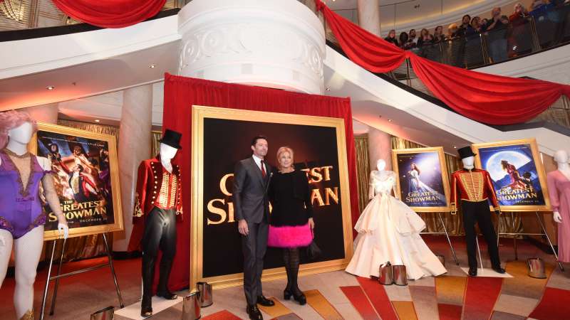 Luxury cruise liner Cunard partnered with 20th Century Fox Film to host the world premiere of The Greatest Showman. Hosted on the Queen Mary 2, while the ship was docked in New York.