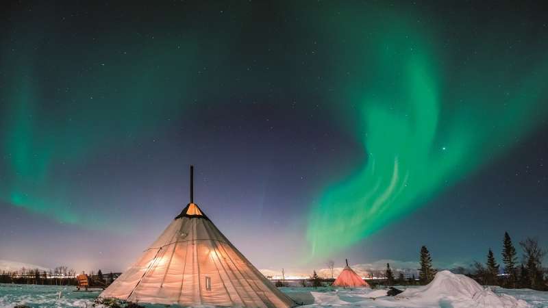 Glamping is just one of the active winter experiences during the 15-night cruise and a Northern Lights’ excursion.