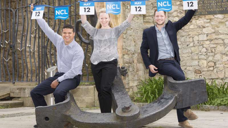 Launching the countdown to the big day, May 12 2017, when Norwegian Jade starts sailing from Southampton, are, from left Julio Fernandez from passenger services, Ingrid Hunt from marketing and Stewart Plumridge from business development.