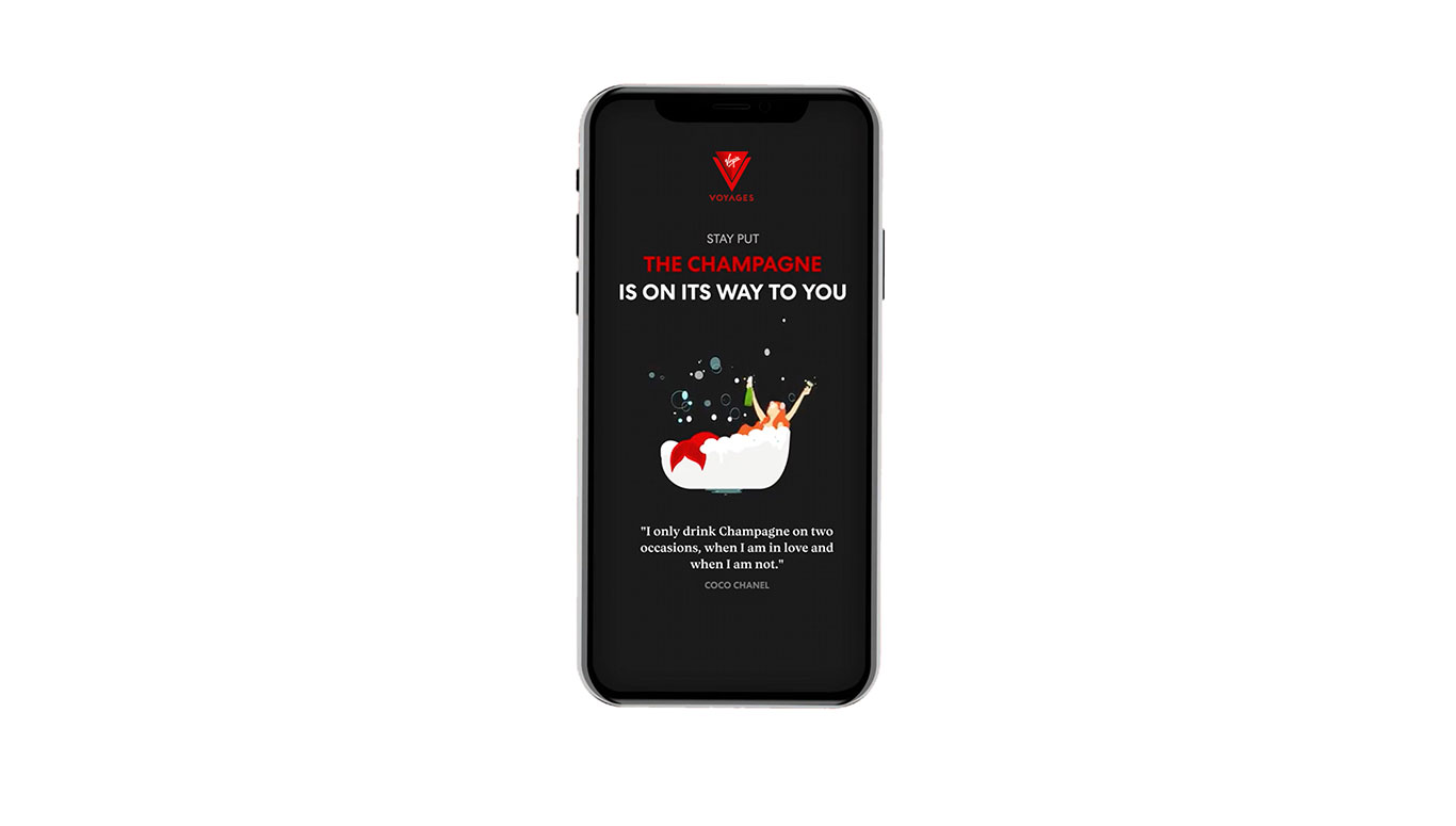 All passengers will have to do to receive their ice-cold bottle of champers is download the Virgin Voyages Sailor App and, when the app is open and ready to go, give their phone a shake.